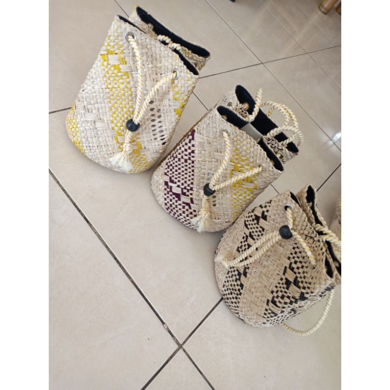 Tas anyaman pandan serut polos set 3.